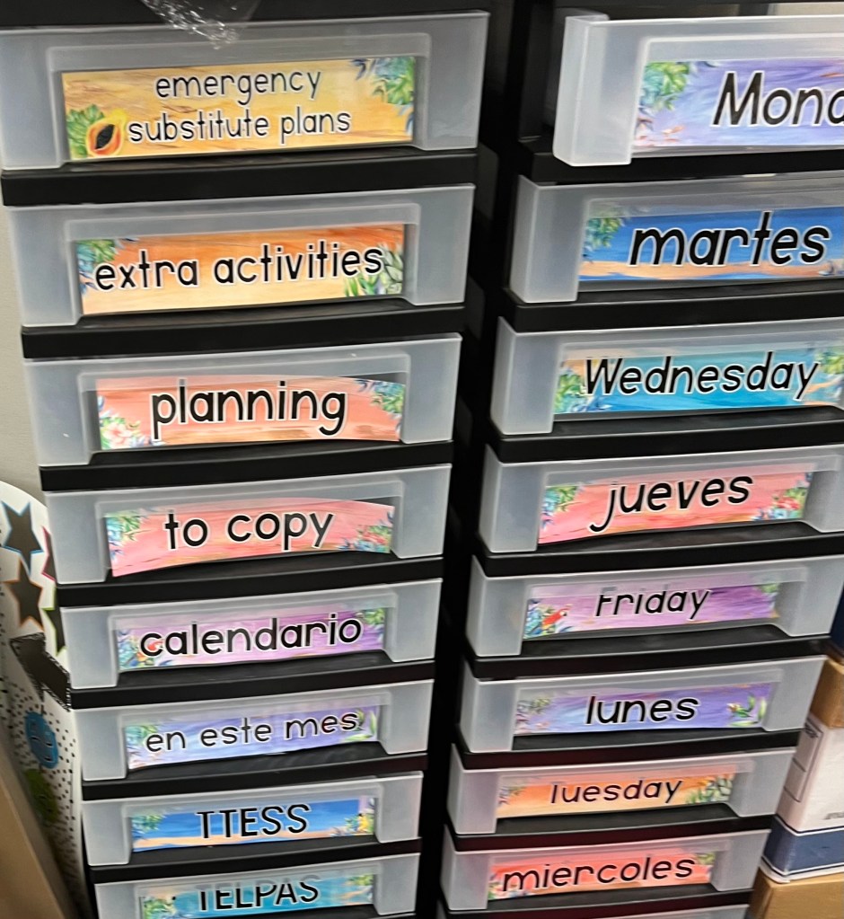 This past year, I went back to kindergarten, where I used my Tropical Paradise set. Several of these pieces are already on my TPT.com store, however I also have several organizational pieces upcoming as well.